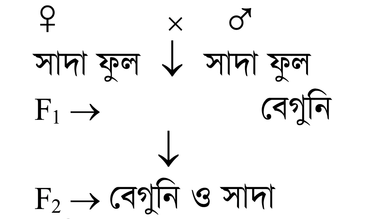 15. দুইটি সাদা বর্ণধারী ফুলের দ্বিসংকরায়িত অবস্থায় ক্রসের ফলে বেগুনি ফুলের সৃষ্টি দেখা গেলো।