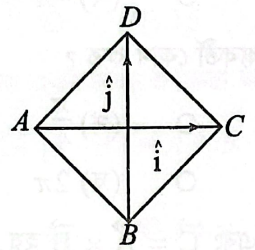 (২ঙ)প্রশ্ন-১৯চিত্রে কর্ণদ্বয় হচ্ছে vec(AC)=hati,vec(BD)=hatj. vec(AB) ভেক্টরের সঠিক রূপ কোনটি?