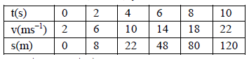 নিচের ছকে 10gm ভরের একটি গতিশীল কণার সময়ের সাপেক্ষে বেগ ও সরণ দেখানো হল:কণাটির 6 সেকেন্ডে সম্পাদিত কাজ এবং 6 তম সেকেন্ডে সম্পাদিত কাজ একই কিনা বিশ্লেষণপূর্বক মতামত দাও।