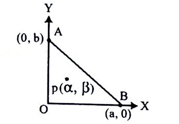 চিত্রে P(a, ẞ) হচ্ছে OAB ত্রিভুজের ভরকেন্দ্র। A(0, b) এবং B(a, 0) বিন্দুগামী সরলরেখার সমীকরণ- [O হলো মূলবিন্দু]