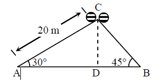 পাশের চিত্রে দুটি হেলানো তল AC ও BC এর শীর্ষবিন্দু C এর উভয় পাশে 2 kg ভরের দুটি লোহার গোলকের অবস্থান দেখানো হলো। C বিন্দুতে গোলক দুটির মোট শক্তি নির্ণয় কর।