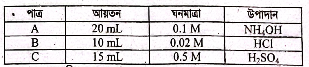 A ও C পাত্রের দ্রবণের মিশ্রণের PH গণনা করো