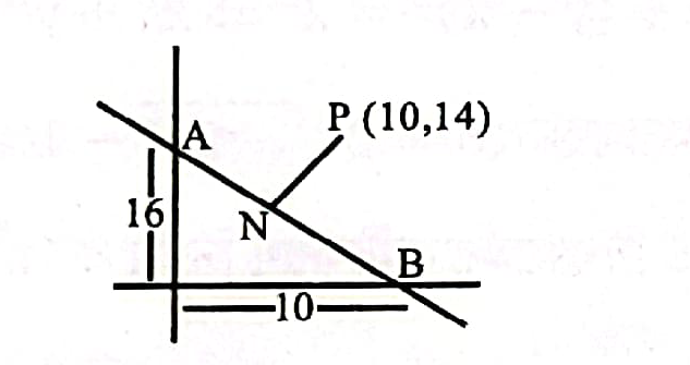 পার্শের চিত্রে AB এর উপর PN লম্ব । PN এর দৈর্ঘ্য নির্নয় কর । আবার এমন একটি বৃত্তের সমীকরন নির্নয় কর যা N বিন্দুতে AB কে স্পর্শ করে।