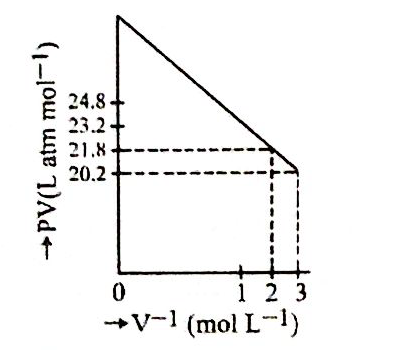 ভ্যানডার ওয়ালস্ সমীকরণের ক্ষেত্রে 1 mol গ্যাসের জন্য যখন b = 0 এবং T = 300 K, তখন PV বনাম 1/V প্লট করলে প্রাপ্ত গ্রাফটি নিম্নরূপ:L2 atm mol-2 এককে ভ্যানডার ওয়ালস্ ধ্রুবক a এর সঠিক মান কোনটি?