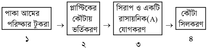 আম সংরক্ষণের জন্য একজন ফল ব্যবসায়ী নিম্নরূপ প্রক্রিয়া অনুসরণ করল: