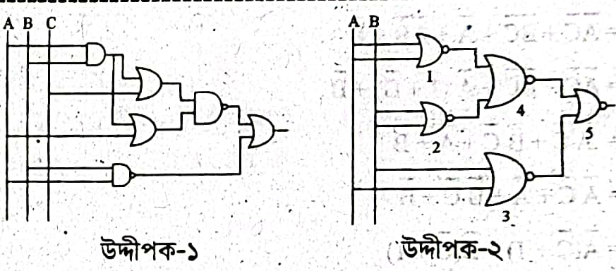 উদ্দীপক-২ এর ৪নং গেইট এর স্থলে মৌলিক গেইটগুলোর যেকোনো একটি ব্যবহার করা হলে সম্পূর্ণ বর্তনীটি যে গেইট নির্দেশ করে তা উদ্দীপক-১ নির্দেশিত গেইট দ্বারা বাস্তবায়ন কর।