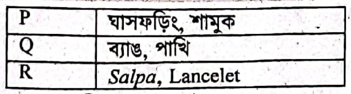 গ. প্রতিসাম্যতার ভিত্তিতে P চিহ্নিত প্রাণীগুলোকে শ্রেণিবিন্যাস করো।ঘ. 'Q ও R এর প্রাণীগুলো একই পর্বের হলেও সকলেই মেরুদণ্ডী নয়'- উক্তিটি বিশ্লেষণ করো
