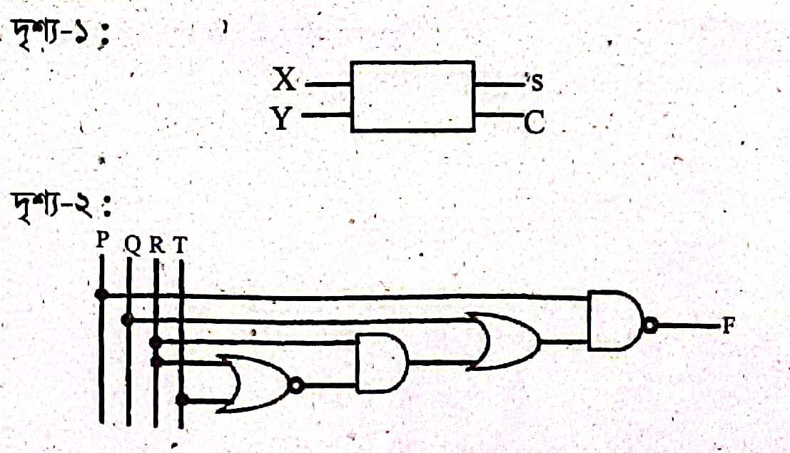 দৃশ্য-১ এর ব্লকচিত্র নির্দেশিত লজিক সার্কিটটি শুধুমাত্র মৌলিক লজিক গেইট ব্যবহার করে বাস্তবায়ন করো।