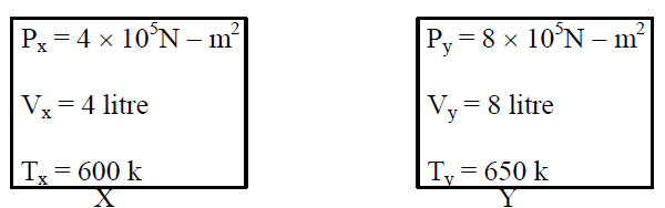 চিত্রে X ও Y সিলিন্ডারে কিছু গ্যাস আছে। যাদের ঘনত্ব ρkg/m3এবং ভর সমান।