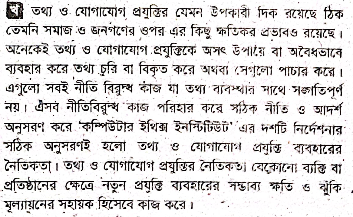 তথ্য ও যোগাযোগ প্রযুক্তির ব্যবহারে নৈতিকতা ব্যাখ্যা কর।