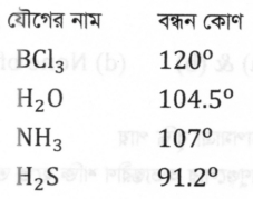উপরের টেবিল থেকে স্পষ্ট যে H2S এর বন্ধন কোণ অন্যান্য অণুগুলোর তুলনায় উল্লেখযোগ্যভাবে কম।