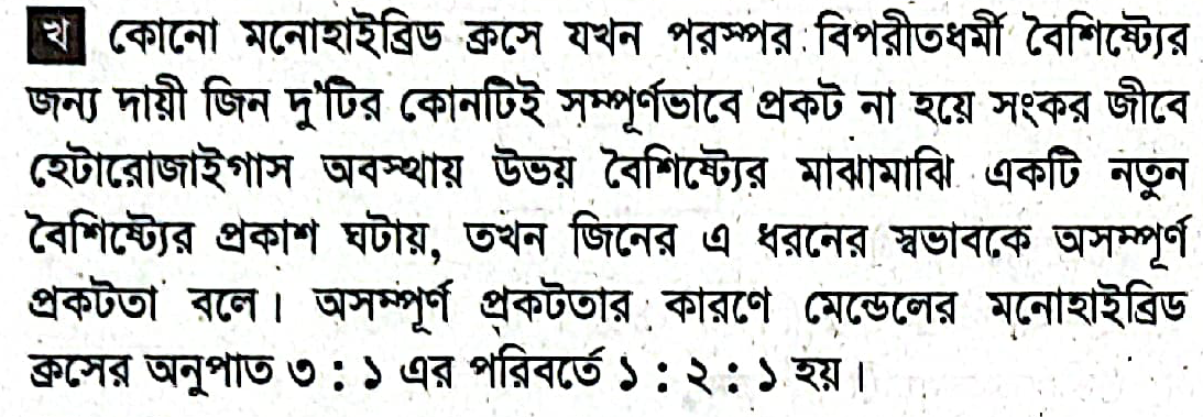 মেন্ডেলের ১ম সূত্রের ব্যতিক্রম কোনটি?