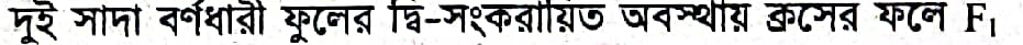 দুইটি সাদা বর্ণধারী ফুলের দ্বিসংকরায়িত অবস্থায় ক্রসের ফলে বেগুনি ফুলের সৃষ্টি দেখা গেলো।