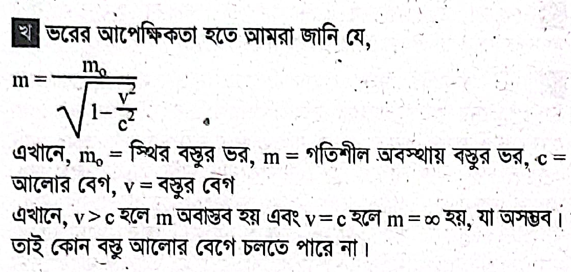 কোন বস্তু আলোর বেগে চলতে পারে না কেন? ব্যাখ্যা করো।