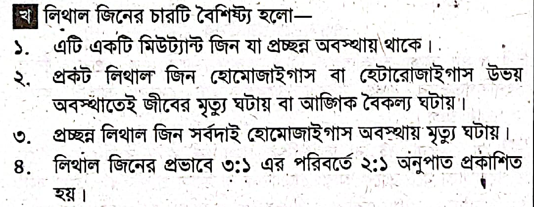 লিথাল জিনের চারটি বৈশিষ্ট্য লিখ ।