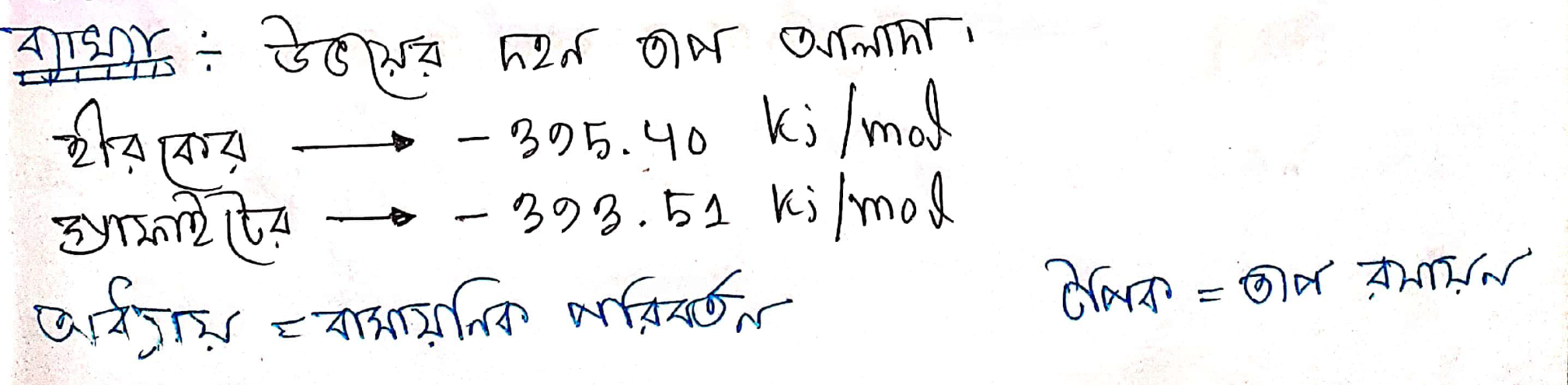 প্রশ্নানুসারে, "উভয়ের দহন তাপ একই" - এই উক্তিটি সত্য নয়। কারণ, হীরা ও গ্রাফাইটের গঠন এবং বন্ধন ভিন্ন হওয়ার কারণে এদের দহন তাপ ভিন্ন হয়। হীরার দহন তাপ গ্রাফাইটের চেয়ে বেশি। 🌡️