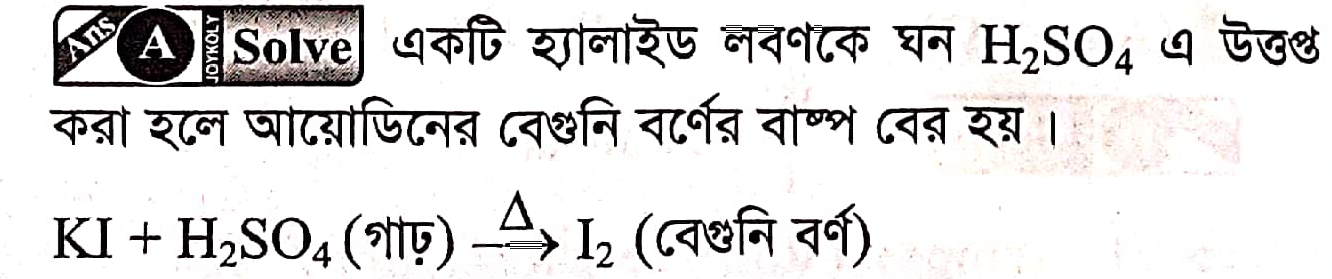 | হ্যালাইড আয়ন | H2SO4 এর সাথে বিক্রিয়ার ফল |