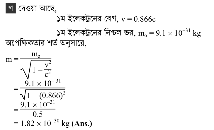 দুটি ইলেকট্রন যথাক্রমে 0.866 c এবং 0.99 c বেগে গতিশীল। ইলেকট্রনের নিশ্চল ভর 9.1 × 10- 31 k g ।