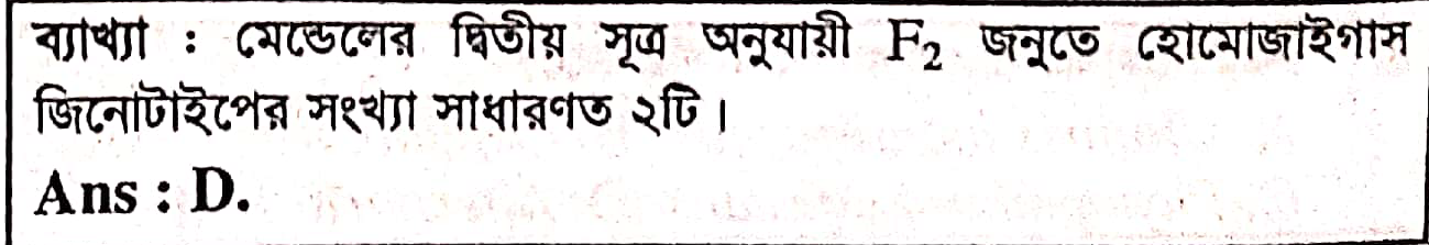 আশা করি, এই ব্যাখ্যাটি মেন্ডেলের দ্বিতীয় সূত্র এবং F2 জনুতে হোমোজাইগাস জিনোটাইপের সংখ্যা বুঝতে সাহায্য করবে। 😊