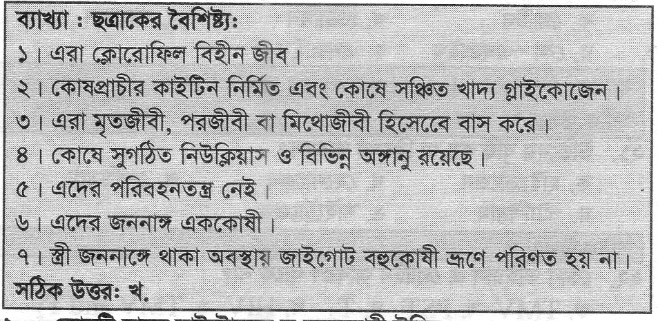 সঠিক উত্তরঃ B. ছত্রাক