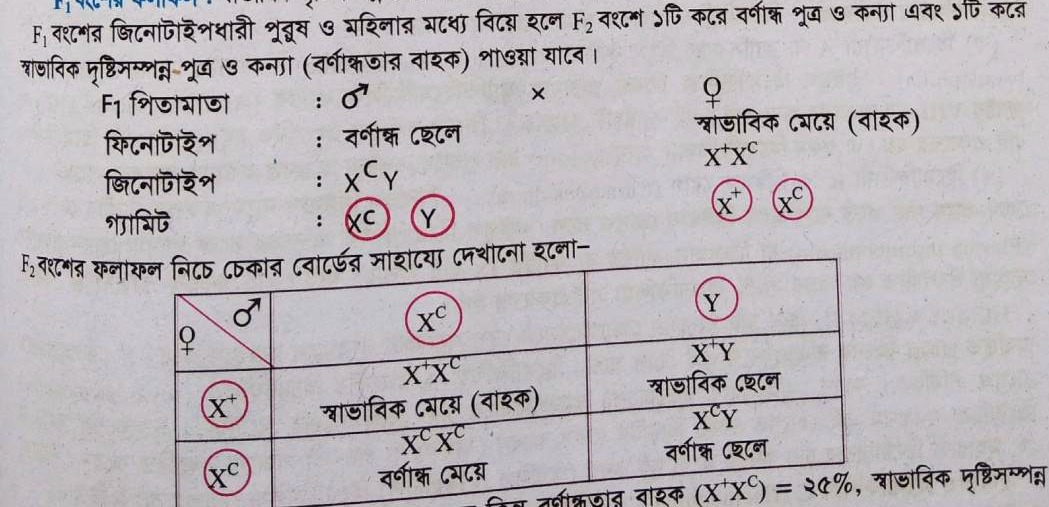 | বর্ণান্ধ কন্যা | XcXc | বর্ণান্ধ 🔴 |