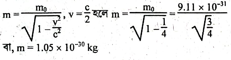 আলোর বেগের অর্ধেক বেগে গতিশীল ইলেকট্রনের ভর নির্ণয়