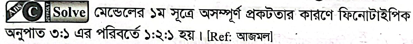আশা করি, অসম্পূর্ণ প্রকটতার কারণে ফিনোটাইপিক অনুপাত ১ : ২ : ১ কেন হয়, তা তোমরা বুঝতে পেরেছ। 👍