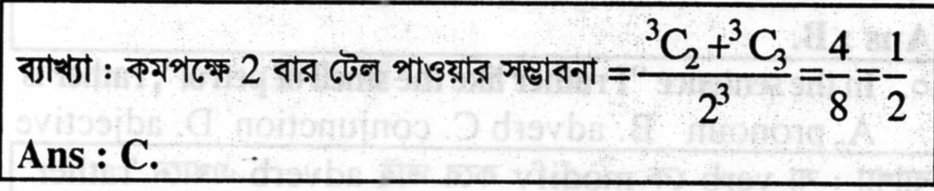 একটি সুষম মুদ্রা তিন বার নিক্ষেপ করা হলো, কমপক্ষে দুইটি হেড পাবার সম্ভাবনা কত?