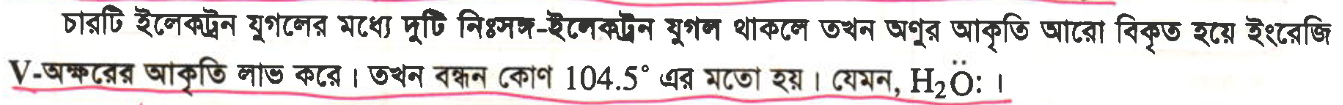 পানির অণুর (H2O) গঠন চতুস্তলকীয় (tetrahedral) হওয়া সত্ত্বেও এর বন্ধন কোণ 109.5° হওয়ার কথা, কিন্তু বাস্তবে তা হয় না।