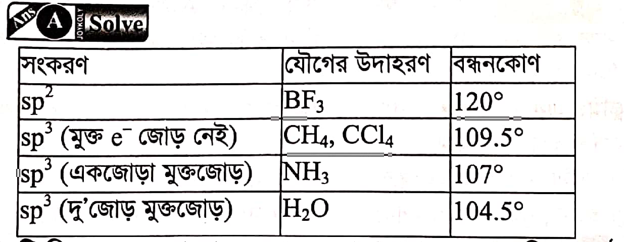 - sp3 সংকরণের জ্যামিতি: sp3 সংকরণের কারণে চতুস্তলীয় (tetrahedral) জ্যামিতি হওয়ার কথা, যেখানে বন্ধন কোণ ১০৯.৫° হওয়ার কথা।📐