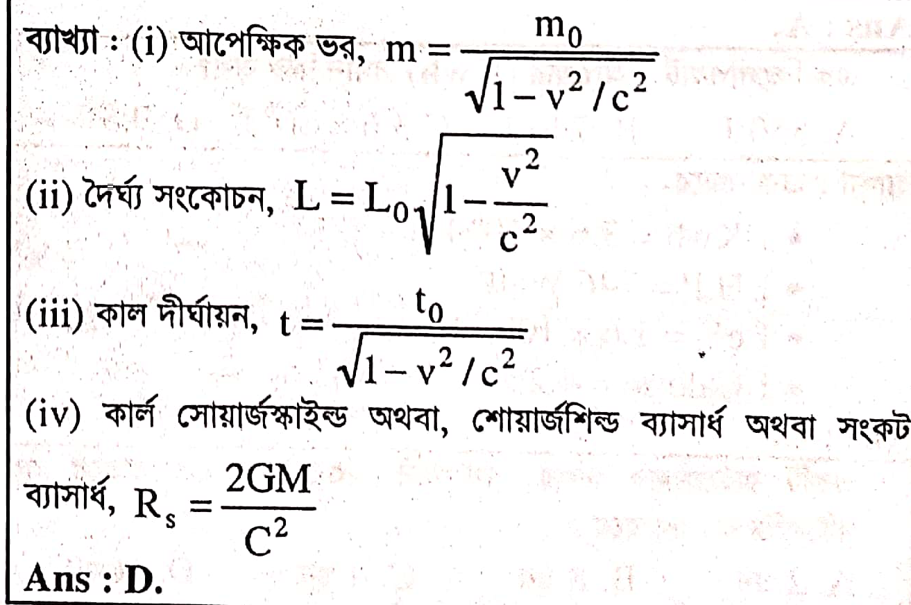 ভরবেগ \( \mathbf{p} \), শক্তি \( \mathbf{E} \) এবং স্থির ভর \( \mathbf{m_0} \) এর মধ্যে সম্পর্ক ব্যবহার করে চলমান বস্তুর ভর \( \mathbf{m} \) নির্ণয় করা যায়। আপেক্ষিকতা তত্ত্ব অনুসারে, যখন কোন বস্তু \( \mathbf{v} \) বেগে গতিশীল থাকে, তখন তার ভর \( \mathbf{m} \) বৃদ্ধি পায়। এই ভর \( \mathbf{m} \) স্থির ভর \( \mathbf{m_0} \) এবং আলোর বেগ \( \mathbf{c} \) এর সাথে সম্পর্কিত। ভর বৃদ্ধির সূত্রটি হলো: \( m = \frac{m_0}{\sqrt{1 - \frac{v^2}{c^2}}} \) এখানে, * \( m \) = গতিশীল বস্তুর ভর 🚀 * \( m_0 \) = স্থির ভর 🧱 * \( v \) = বস্তুর বেগ 🚗 * \( c \) = আলোর বেগ (প্রায় \( 3 \times 10^8 \) মিটার/সেকেন্ড) 💡 সুতরাং, যদি কোন বাস্তব স্থির ভর \( m_0 \) এবং বস্তুটি \( v \) বেগে চলমান হলে তার ভর \( m \) হয়, তবে \( m \) হবে: \( m = \frac{m_0}{\sqrt{1 - \frac{v^2}{c^2}}} \) ✅