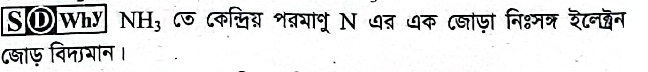 আশা করি, NH3 যৌগে নিঃসঙ্গ ইলেকট্রন জোড়ের বিষয়টি তোমরা বুঝতে পেরেছ। 👍