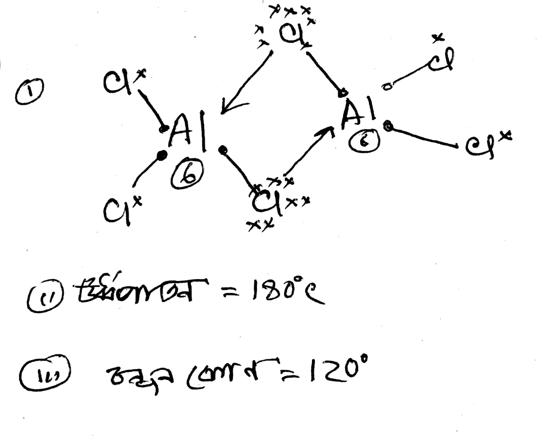 - গ্যাসীয় অবস্থায় AlCl3 এর বন্ধন কোণ 120°।