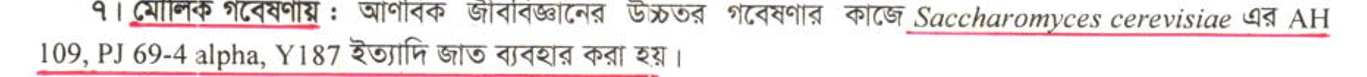 অনুজীবটি ব্যবহৃত হয়— রুটি শিল্পে গবেষণায় জেনেটিক মেটেরিয়াল হিসেবে জৈব এসিড তৈরিতেনিচের কোনটি সঠিক?
