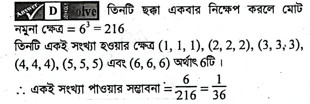দুইটি ছক্কা একসাথে নিক্ষেপ করলে 7 পাবার সম্ভাবনা কোনটি?