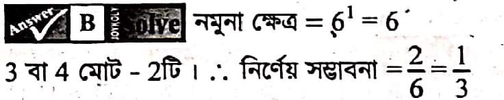 প্রশ্নঃ একটি ছক্কাকে নিক্ষেপ করা হল, 3 বা 4 পাওয়ার সম্ভাবনা--