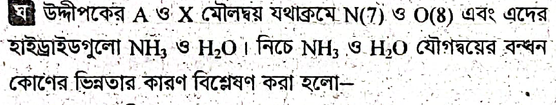 A ও X এর হাইড্রাইডের বন্ধন কোণের ভিন্নতার কারণ ব্যাখ্যা কর।