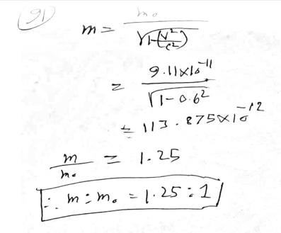 একটি ইলেকট্রনের নিশ্চল ভর m0= 9.11×10-11 kg। ইলেকট্রনটি 0.6 c দ্রুতিতে গতিশীল।