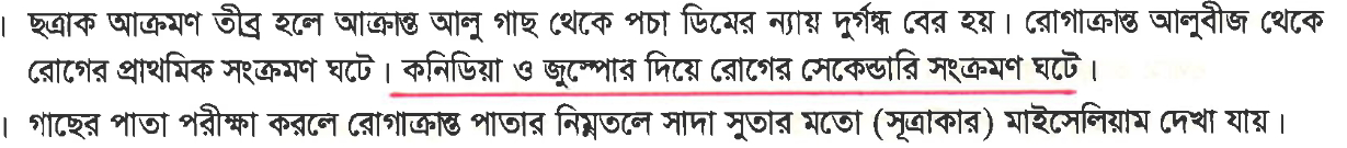 আয়ারল্যান্ডে গোলআলুতে এক ধরনের রোগের আক্রমণে ভয়াবহ দুর্ভিক্ষ দেখা দেয়। এতে প্রায় দশ লক্ষ লোক মারা যায়। রোগটির লক্ষণ হলো— নিচের কোনটি সঠিক?