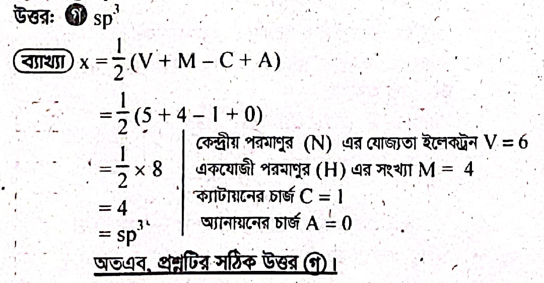 আশা করি, এই ব্যাখ্যাটি NH4+ আয়নে নাইট্রোজেনের সংকরণ বুঝতে সাহায্য করবে। 🤔💡