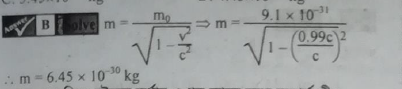 একজন মহাশূন্যযান চারী A এর ভর 60 kg এবং বয়স 30 বছর। সে 2.4×108 m/s বেগে গতিশীল মহাশূন্য যানে চড়ে ছায়াপথ অনুসন্ধানে গেল। পঞ্জিকা অনুসারে তার জমজ ভাই B এর বয়স যখন 80 বছর হলো তখন পৃথিবীতে ফিরে এলো। মহাশূন্য যানে A এর ভর কত হবে?