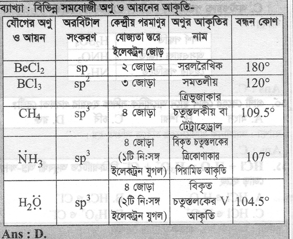 এ কারণে H2O এর বন্ধনকোণ ১০৯.৫° (চতুস্তলকীয় কোণ) থেকে কমে ১০৪.৫° হয়।