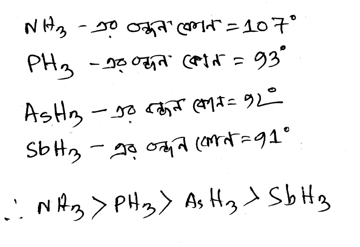 বন্ধন ক্রম (Bond strength) বলতে কোনো রাসায়নিক বন্ধন ভেঙে পরমাণুগুলোকে আলাদা করতে যে পরিমাণ শক্তির প্রয়োজন হয়, তা বোঝায়। এক্ষেত্রে, NH3, PH3, AsH3 এবং SbH3 যৌগগুলোর বন্ধন ক্রম আলোচনা করা হলো।