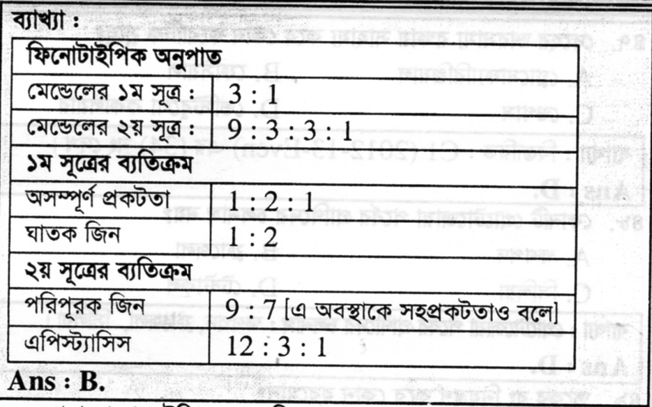 নোট: এখানে কিন্তু A প্রকট এপিস্ট্যাটিক জিন।