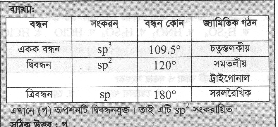 সুতরাং, C2H4 যৌগে কার্বন পরমাণুগুলো sp2 সংকরায়িত। এর ফলে যৌগটি ত্রিকোণীয় সমতলীয় জ্যামিতি লাভ করে এবং দ্বিবন্ধন (একটি σ এবং একটি π বন্ধন) গঠিত হয়। যা এটিকে বিশেষ রাসায়নিক বৈশিষ্ট্য প্রদান করে। 🎉