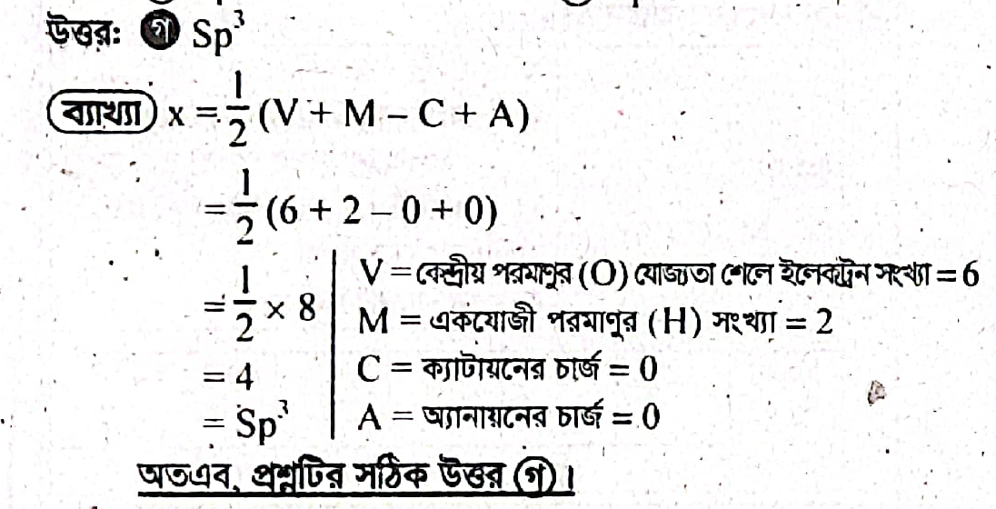 আশা করি, এই ব্যাখ্যা H2O অণুর সংকরণ সম্পর্কে আপনার ধারণা স্পষ্ট করতে সাহায্য করবে। যদি আরও কিছু জানার থাকে, তবে জিজ্ঞাসা করতে পারেন।😊