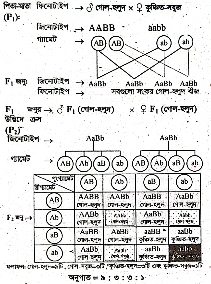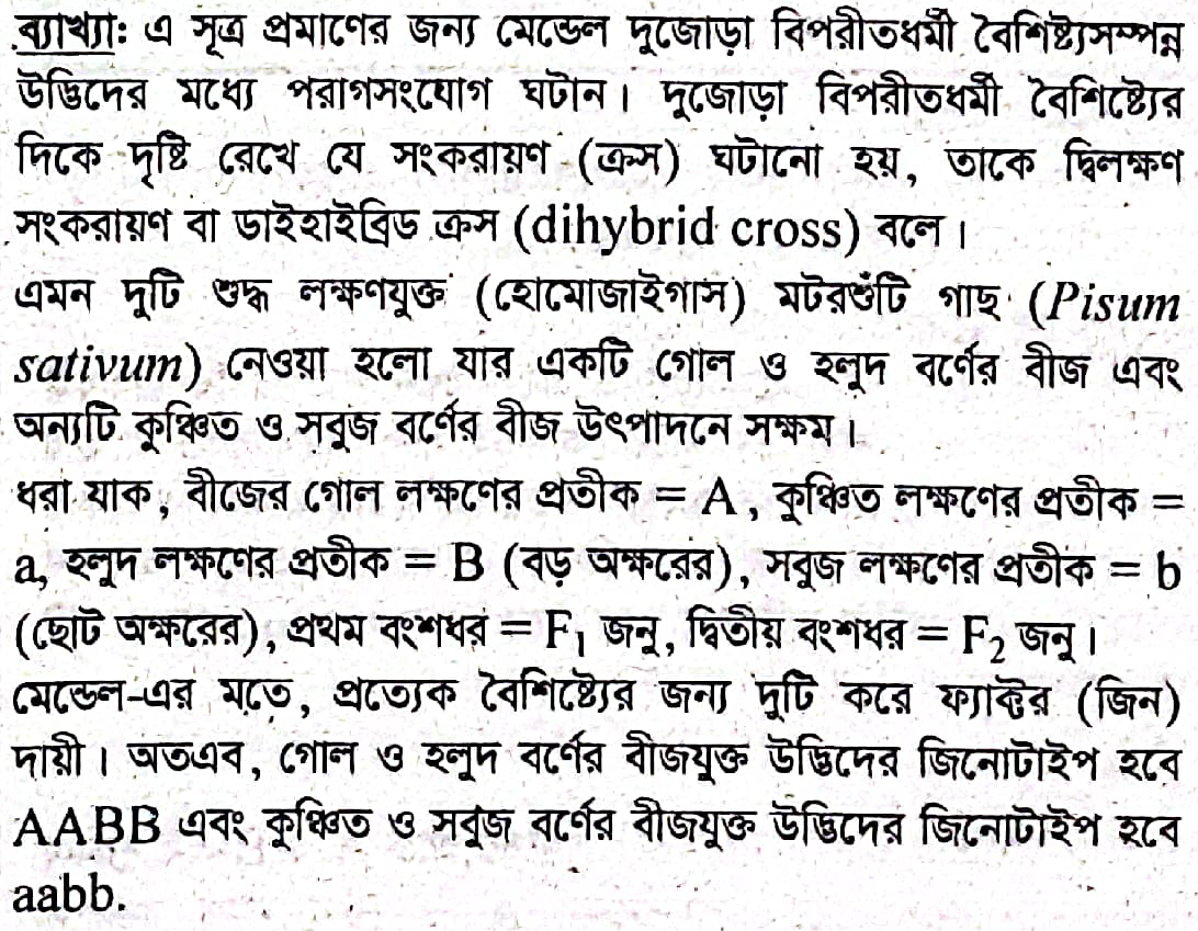 উদ্দীপকটি মেন্ডেলের দ্বিতীয় সূত্র দ্বারা ব্যাখ্যা কর।