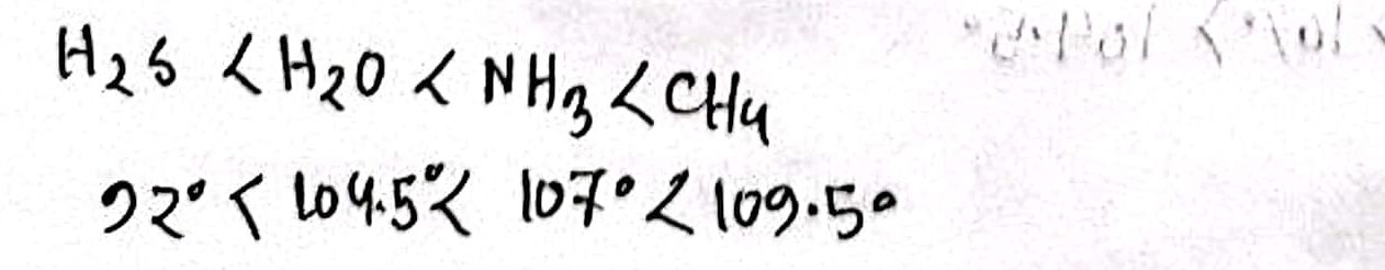 আলোচ্য যৌগগুলোর বন্ধন কোণের সঠিক ক্রম হলো: H₂S < H₂O < NH₃ < CH₄। নিচে কারণগুলো ব্যাখ্যা করা হলো: