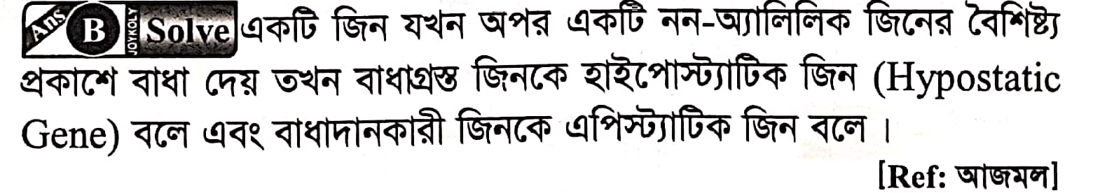 সঠিক উত্তরঃ B. Hypostatic Gene