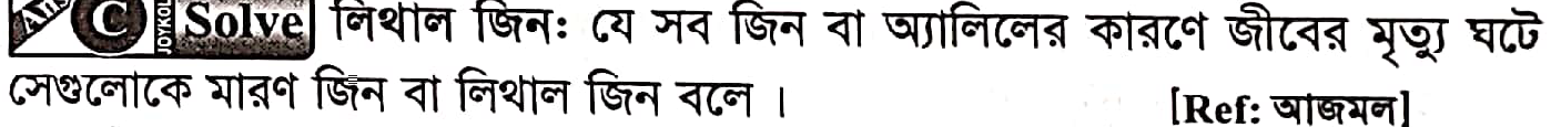 লিথাল জিন (Lethal gene) হলো সেই জিন 🧬 যা জীবের স্বাভাবিক বৃদ্ধি এবং বিকাশে বাধা দেয়, যার ফলস্বরূপ জীবের মৃত্যু ☠️ পর্যন্ত হতে পারে। এই জিনগুলো জীবের জীবন ধারণের জন্য অত্যাবশ্যকীয় প্রোটিন তৈরি করতে অক্ষম করে তোলে।
